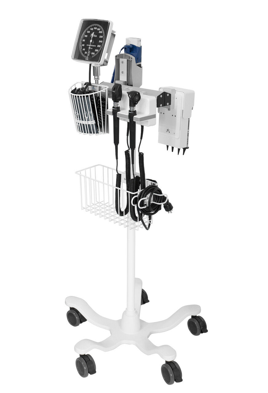 La station de diagnostic mobile Amico (DSUR1CHFHDAX) est une solution de diagnostic entièrement intégrée, montée sur support roulant, conçue pour la mobilité et l'efficacité en milieu clinique. Cette station est livrée avec des outils de diagnostic importants comme un ophtalmoscope halogène, un otoscope halogène, un distributeur de spéculums, un sphygmomanomètre avec un support incliné et un panier pour un brassard sans latex pour adulte, ce qui facilite l'évaluation approfondie des patients. Le grand panier avec enrouleur de cordon et un cordon d'alimentation de 10 pieds améliore l'organisation et l'accessibilité, faisant de la stationun choix idéal pour les professionnels de la santé qui recherchent la fiabilité et la commodité.