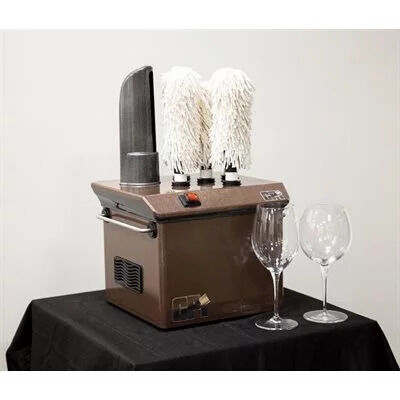 The Campus Products StemshinePro ™ was designed with the restaurant operator in mind. Five high-spinning soft polishing brushes aided by a heated fan assist the operator in producing gleaming shiny stemware. Easily capable of drying and polishing six to eight times the human equivalent the Stemshine™ provides labor savings in addition to higher quality results. As many as 400 stems per hour.