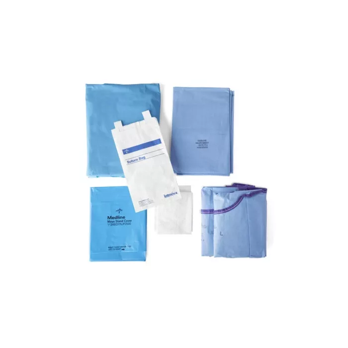 Pack includes: reinforced table cover, 50" x 90" (127 x 229 cm); Mayo stand cover, 24" x 53" (61 x 135 cm); Sirus nonreinforced gown (L) with towel in outer wrap; Sirus nonreinforced gown (XL); suture bag (paper); 3/4 drape sheet, 53" x 77" (135 x 196 cm) and hand towel