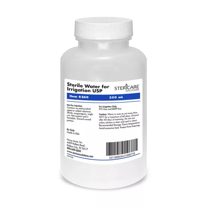 L'eau stérile USP est une solution stérile de qualité pharmaceutique conçue pour diverses applications médicales et de soins de santé. Conditionné dans une bouteille de 250 ml, ce produit est idéal pour les situations nécessitant une source d'eau stérile, comme le mélange de médicaments, la dilution de solutions et l'irrigation des plaies. Cette eau est exempte de tout agent antimicrobien ou autre substance ajoutée, garantissant qu'elle répond aux normes les plus strictes de pureté et de sécurité.