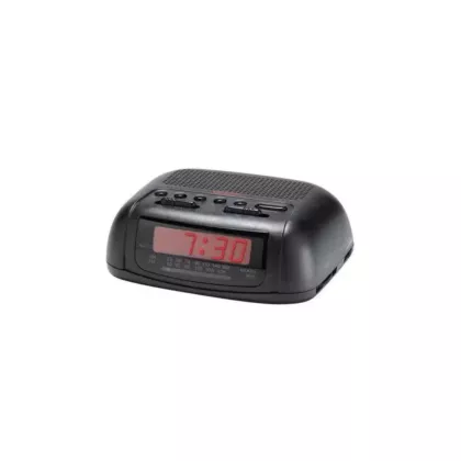 This space-saving compact AM/FM Alarm Clock Radio fits easily on a nightstand and comes with all the basic features your guests will need. Its dual alarm, radio or buzz lets guests wake the way they want. The 0.6 inch display includes alarm on/off and PM indicators. All this in a small footprint with a full 1 year warranty.