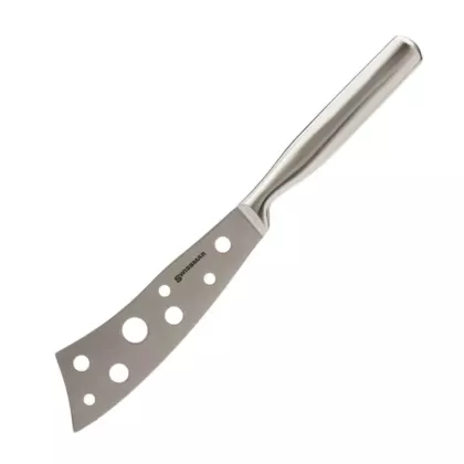Ce couteau à fromage est idéal pour couper des fromages tels que le gouda, l'edam et le provolone. Il est doté d'une pointe aigüe pour percer ou écorner les croûtes. Les trous dans la lame empêchent le fromage de coller, et il est fabriqué en acier inoxydable avec une poignée creuse, le tout étant présenté dans un emballage-cadeau.