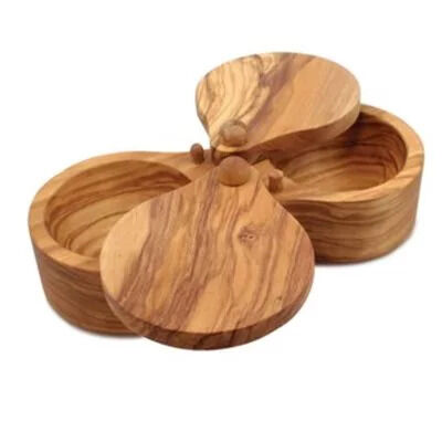 Ce salier en bois d'olive véritable allie la robustesse et la durabilité du bois d'olive à l'esthétique intemporelle de son grain unique. Avec sa capacité de 2,4 oz et son design à double compartiment avec couvercles pivotants, il est idéal pour un usage professionnel dans les restaurants, bars, ou services de traiteur.