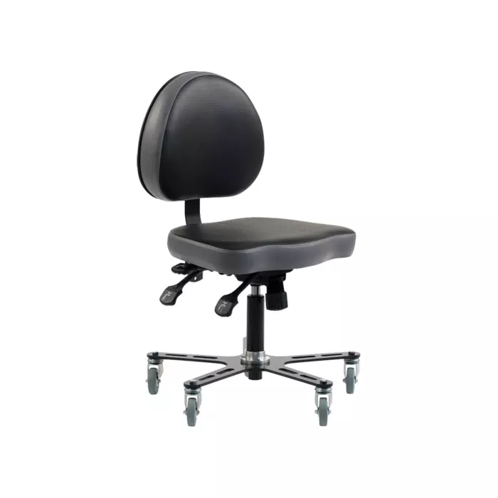 - La chaise industrielle ergonomique SF180, dotée d'un dossier plus large, offre un confort supérieur lors de longues heures de travail