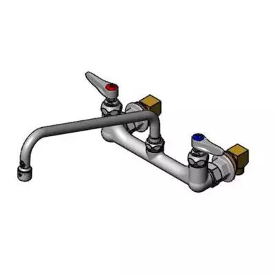 8" wall mount mixing faucet with polished chrome plated brass body, 12" swing nozzle with 2.2 GPM vandal resistant aerator, compression cartridges with spring checks, lever handles, 1/2" NPT male inlets, 1/2" NPT supply stops and 36" flexible stainless steel hoses. 2.20 GPM @ 60 psi.