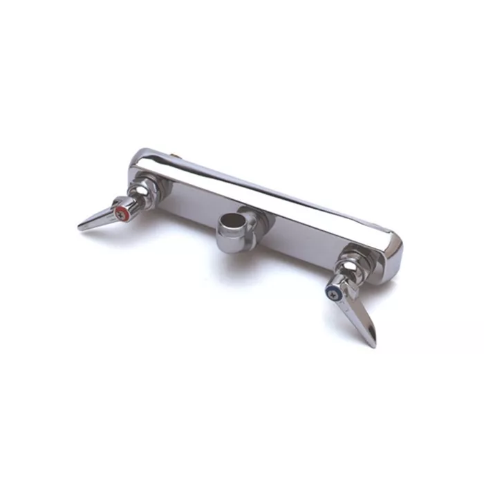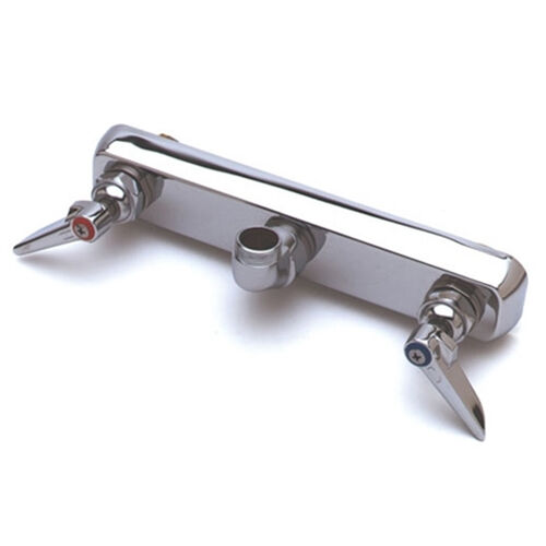 Splash Back Mounted. Bronze body. Removable seats. 10-1/2" (267mm) long X 2" (51mm) wide chrome plated escutcheon. 8" (203mm) centers. 1-1/2" (38mm) long shanks. 1/2" IPS thread.