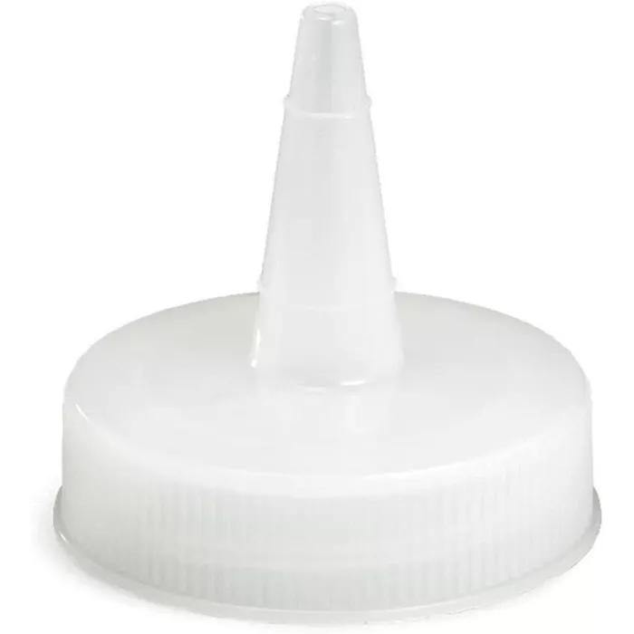 The Squeeze Bottle Top by TableCraft with 38mm cone tip is the perfect solution for all your squeeze bottle needs. This top fits all 38mm squeeze bottles and is made of durable, dishwasher safe clear plastic. The cone tip allows for precise dispensing and helps to prevent mess and waste. Whether you're using it for condiments, sauces, or other liquids, this squeeze bottle top is a must-have for any kitchen or food service establishment.