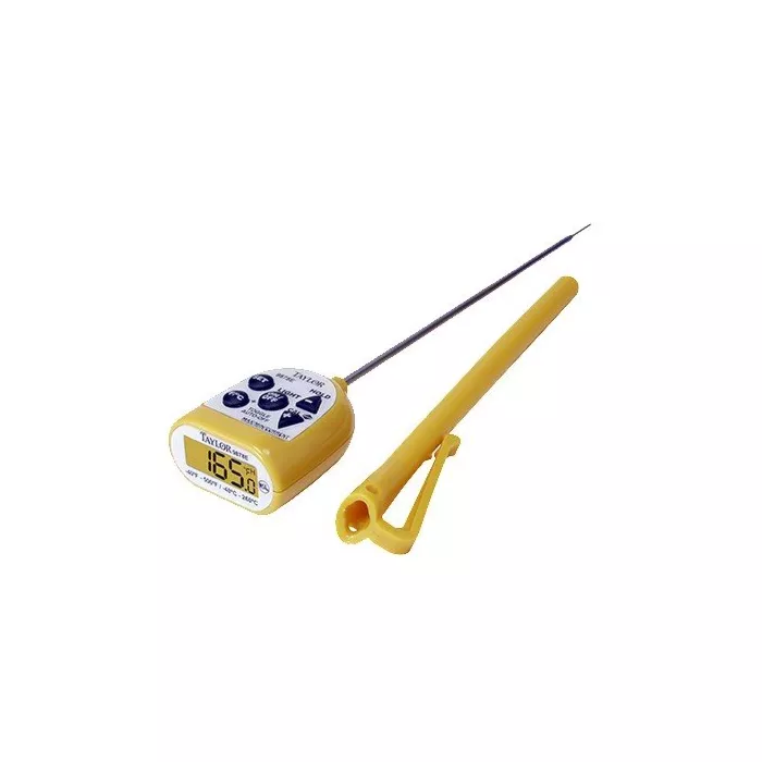 Pocket thermometer. Digital display. High precision. -40 to 500F temperature range. F/C selectable. Hold feature, two stage off button. 4.5" stainless steel slim stem. Anti-microbial.