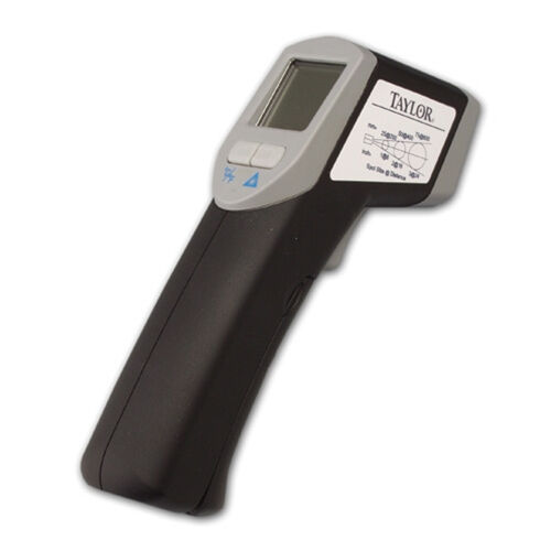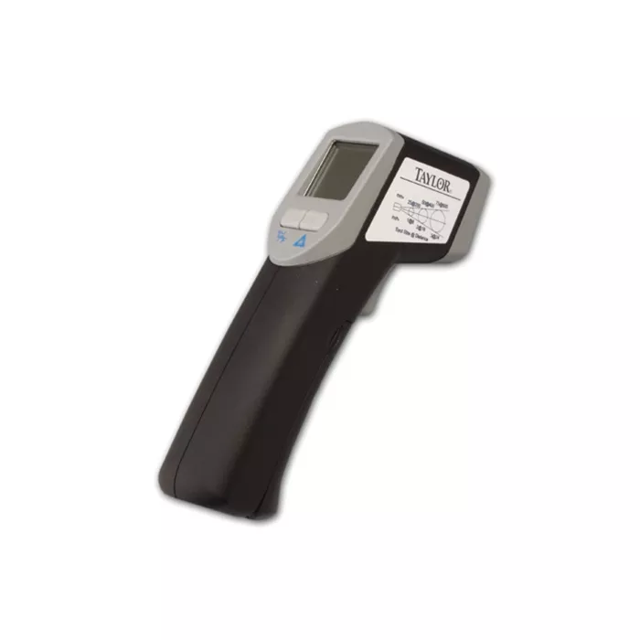 Safe, non-contact infrared thermometer measures surface temperatures. Temperature range -49° to 752°F/-45° to 400°C with one second response time. Accuracy: -49° to 32°F +/- 1.8°F + (-0.1 x (reading -32)). Accuracy: -45° to 0°C +/- 1°C = (0.1 x reading). Accuracy: 32 to 149°F +/- 1.8°F; 0 to 65°C +/- 1°C. Accuracy: above 149°F and 65°C +/- 1.5% of reading. Resolution 1°F / 1°C. Distance to spot ratio=6 to 1. Scan, hold and auto off functions. F°/C° selectable. 2 AAA batteries included.