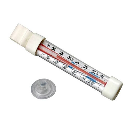 Compact size thermometer clips to rack or attaches with suction cup. Range -20°F to 80°F and -20°C to 30°C. Safe temperature zone indicators.