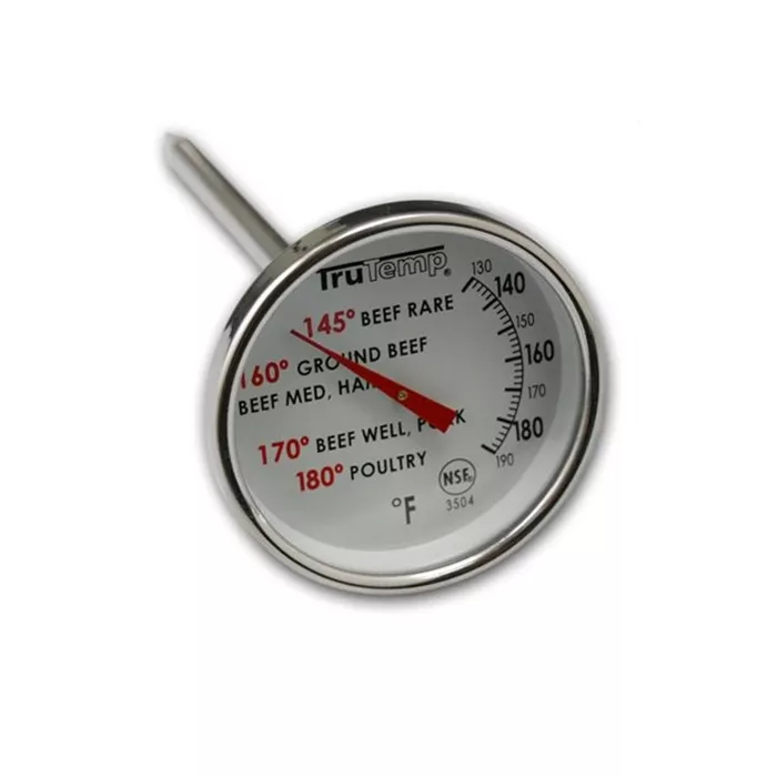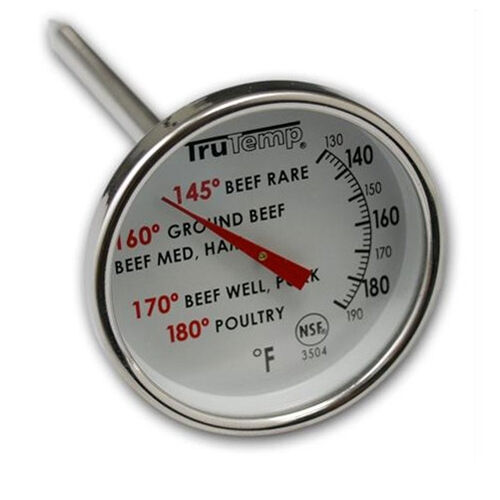 TruTemp® Meat Thermometer, dial type, with 4-1/2" stem, 120° to 210°F temperature range, adjustable indicators, stainless steel, NSF