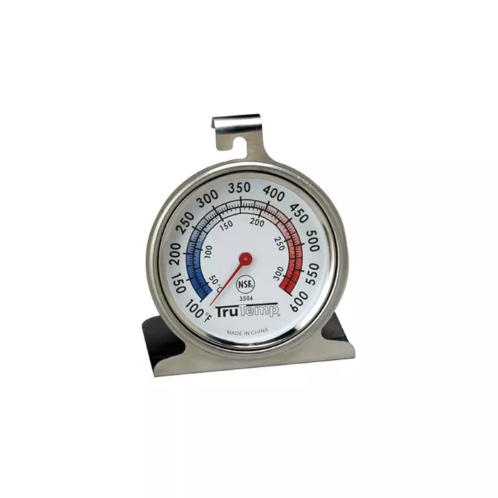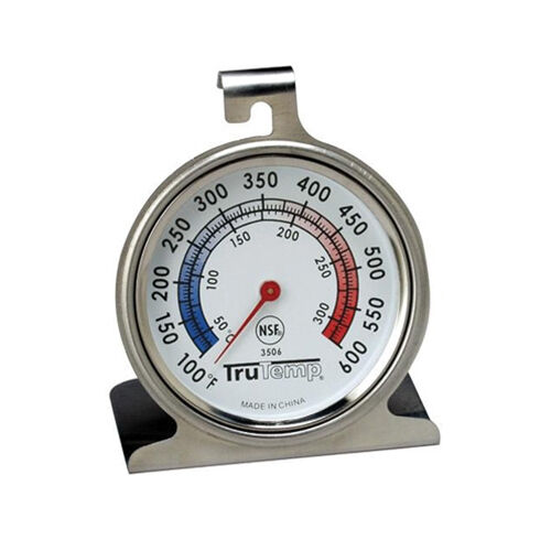 Easy-to-read 2 1/4" dial. Range 100°F to 600°F and 50°C to 300°C. Bright blue and red dial graphics. Red pointer. Durable stainless steel. Hangs or stands. NSF listed.