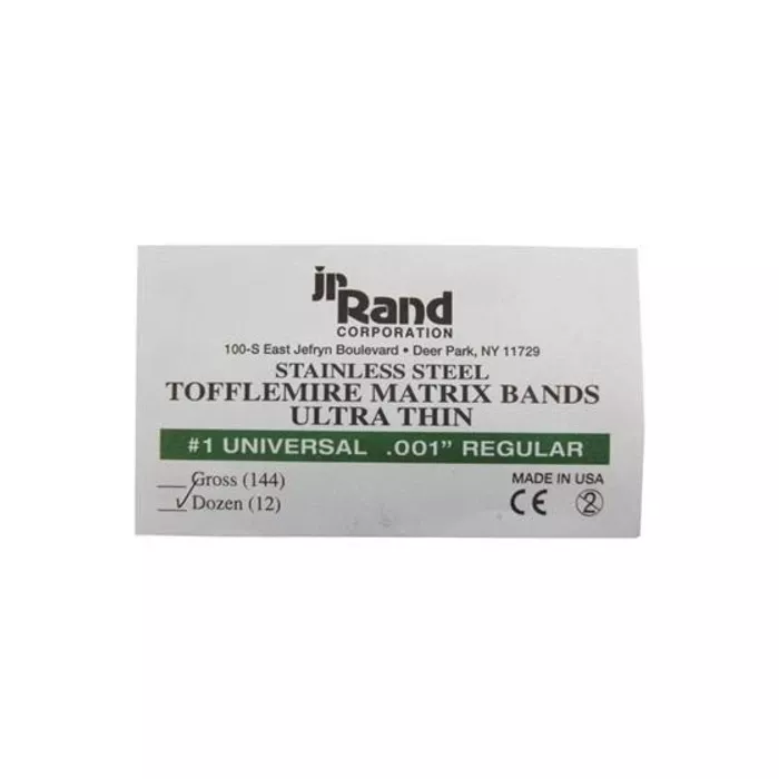 Bandes de Matrice : Bandes de haute qualité utilisées pour les restaurations dentaires, y compris les Bandes de Matrice Ultra Regular #1.