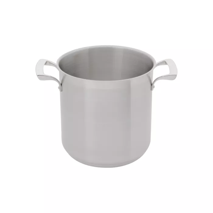 8.3 quart deep stock pot. 8.5" diameter. Does not include cover. "Stay Cool" riveted handle. Induction capable. Stainless steel construction. NSF compliant.
