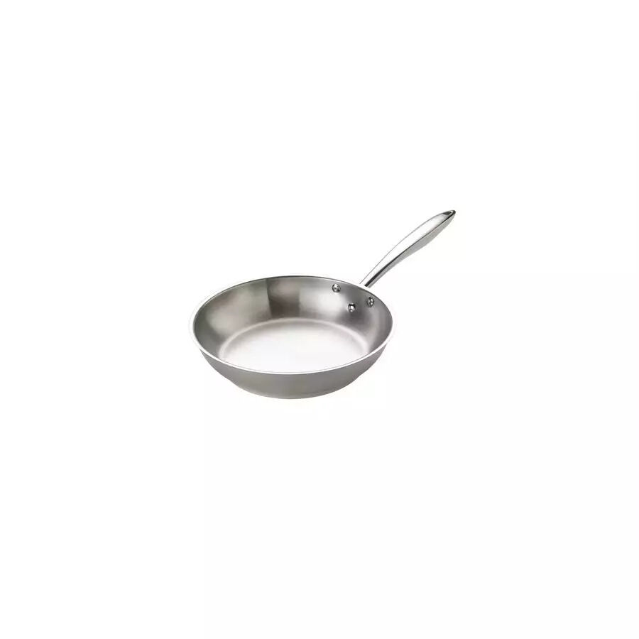 6 mm (0.5”) aluminum sandwich base for fast even heat transfer. Stay cool handle resists heating.