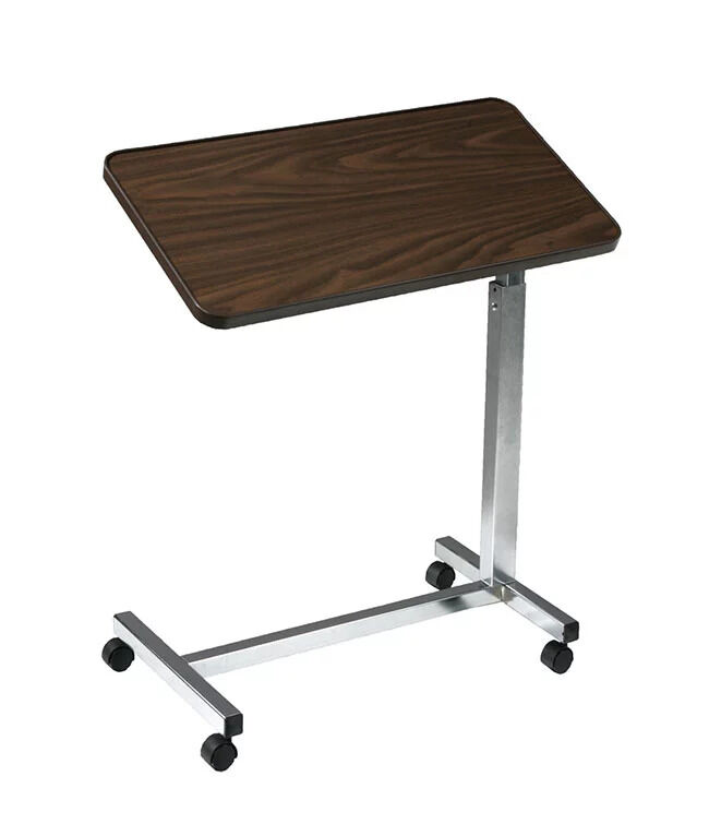 - Overview works with any hospital bed, has walnut wood-grain laminate top