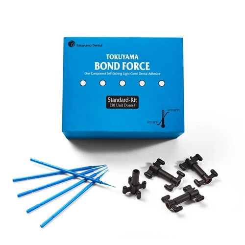 BOND FORCE is a seventh generation single component, self- etching, fluoride releasing bonding agent. With the patented SR monomer, Bond Force creates a 3-D link to the tooth generating an extremely strong bond to enamel and dentin. Bond Force requires only one application, and is designed to be used on both cut/uncut enamel and dentin. Bond Force is available in bottle (5mL), unit dose (50 unit dose) and Pen (2mL) dispensing systems.
