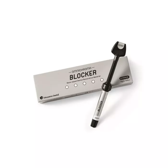 The Tokuyama OMNICHROMA Blocker Universal Composite Syringe is an advanced dental restorative material designed to complement the OMNICHROMA universal composite. The Blocker is specifically formulated to mask discoloration, block out unwanted shades, and provide a base layer for aesthetic restorations. This composite offers excellent handling, strength, and aesthetic results, making it an ideal choice for various restorative procedures. Each syringe contains 4g of composite material, ensuring ample supply for multiple applications.