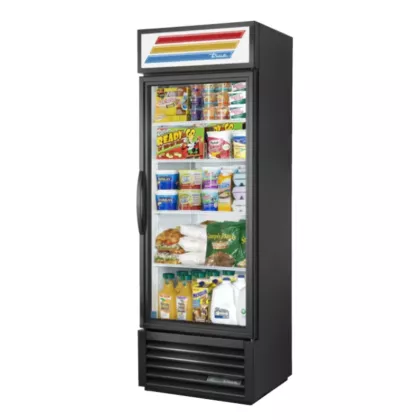 True’s GDM-19TBL Merchandising Refrigerator with 1 Glass Door - Black uses the highest-quality materials and oversized refrigeration systems providing the user with colder product temperatures and lower utility costs in an attractive merchandiser that brilliantly displays packaged food and beverages.
