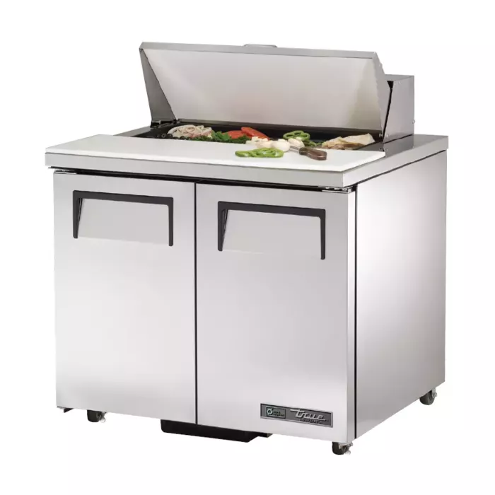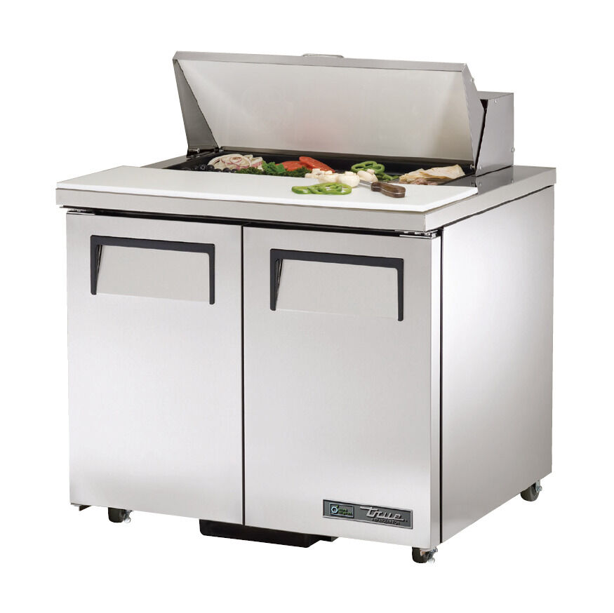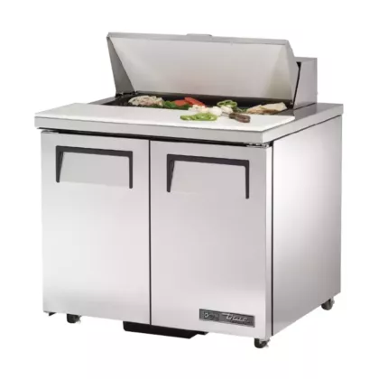 The True TSSU-36-8-ADA Sandwich / Salad 8 Pan Refrigerated Prep Table with 2 doors, ADA compliant, is built for long-term durability and efficiency. Designed with high-quality materials and oversized refrigeration systems, it delivers colder product temperatures, lower utility costs, and exceptional food safety, offering unmatched value in the food service industry.