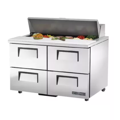 True TSSU-48-12D-4 Sandwich / Salad 12 Pan Refrigerated Prep Table, 4 Drawers with the highest quality materials and oversized refrigeration systems provide the user with colder product temperatures, lower utility costs, exceptional food safety and the best value in today’s food service marketplace.