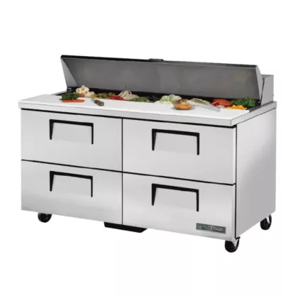 True's TSSU-60-16D-4 Sandwich / Salad 16 Pan Refrigerated Prep Table, 4 Drawers uses the highest quality materials and oversized refrigeration systems provide the user with colder product temperatures, lower utility costs, exceptional food safety and the best value in today’s food service marketplace.