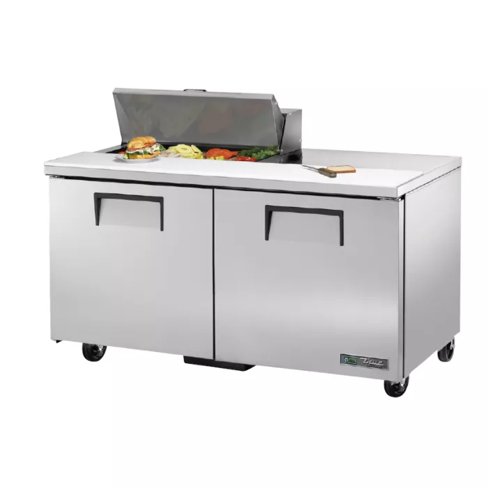 True TSSU-60-08 Sandwich / Salad 8 Pan Refrigerated Prep Table, 2 Doors uses the highest quality materials and oversized refrigeration systems providing the user with colder product temperatures, lower utility costs, exceptional food safety and the best value in today’s food service marketplace.