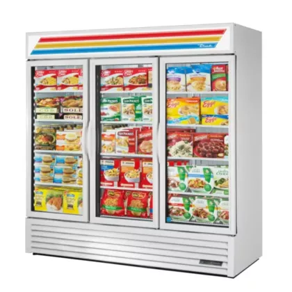 True’s GDM-72F Merchandiser Freezer with 3 Glass Doors and a white exterior is designed for enduring quality to protect your long-term investment. True’s commitment to using the highest quality materials and oversized refrigeration systems ensures colder product temperatures and lower utility costs, all while providing an attractive merchandiser that brilliantly displays frozen food and ice cream.