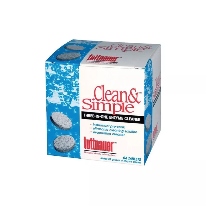 Les comprimés de nettoyage ultrasonique Tuttnauer Clean and Simple sont conçus pour offrir une solution de nettoyage puissante et efficace pour les instruments médicaux et dentaires. La formulation de ces comprimés se dissout rapidement dans l'eau, générant une solution de nettoyage ultrasonique qui pénètre efficacement et élimine les débris organiques, le sang et autres contaminants des instruments. Chaque boîte contient 144 comprimés, offrant une solution pratique et économique pour maintenir la propreté et l'hygiène dans les établissements de santé.