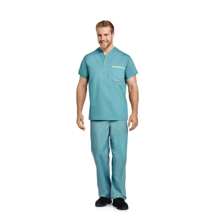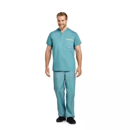 Available for special programs, this scrub set was designed to meet the needs of hospital O.R. staff. A unisex, reversible, drawstring scrub set featuring a color code size indicator on the chest pocket and a simple drawstring scrub pant with one back pocket.