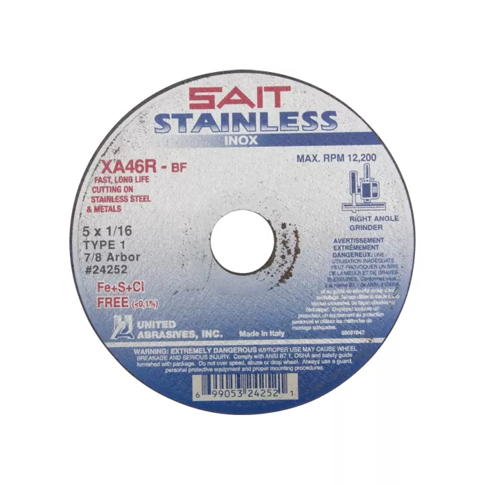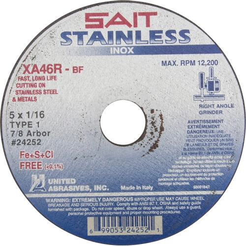 United Abrasives Inc. Meule à tronçonner sans contaminant ZA46R, 15" X 1/16" X 7/8", 12 200, 1 Type (24252)
