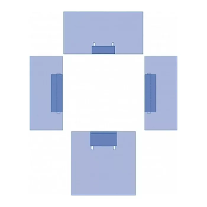 Pack includes: Reinforced table cover, 50" x 90" (127 cm x 229 cm); 1 Mayo stand cover, 24" x 53" (61 cm x 135 cm); 2 Side drapes with adhesive, 35" x 79" (89 cm x 201 cm); 1 Bottom drape with adhesive, 70" x 75" (178 cm x 191 cm); 1 Top drape with adhesive, 102" x 53" (259 cm x 135 cm) and Suture bag (paper). Top, Side and Bottom Drapes feature Absorbent reinforcement: Top drape 29" x 10" (74 cm x 25 cm), Bottom drape 29" x 16" (74 cm x 41 cm), Side drape 8" x 40" (20 cm x 102 cm); Adhesive along reinforced edge; Hook-and-loop line holders on top and bottom drapes; Side drapes have 4" x 40" fabric trough (10 cm x 102 cm); Top drape available separately as DYNJP4002, sterile; Bottom drape and side drape not available sterile.