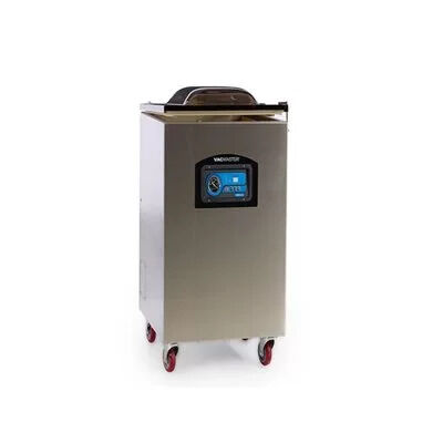 The Vacmaster VP540 chamber vacuum packaging machine is ideal for vacuum packaging liquids and liquid rich foods, sucking out of the entire chamber when sealing, not just the bag itself. By doing so, the air pressure is equalized both inside and outside the bag, keeping liquids in and ensuring a superior seal every time. Perfect for commercial operations with limited counter space, this floor model comes with 4 easy rolling casters so you can move the unit out of the way when it's not in use.