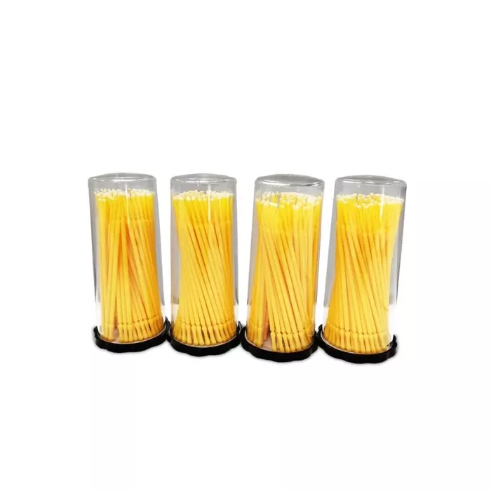 Valuemed's microbrush is perfect for all of your restorative solution holding needs. Bendable neck. Packaged in convenient tubes of 100 brushes. Yellow colour, fine size. 4 tubes x 100 brushes (400 microbrushes)/packageVue d’ensemble