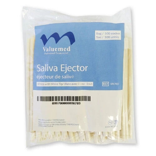 Valuemed Professional Saliva Ejectors in White with White Tip are essential tools for effective oral fluid management in dental procedures. Each bag contains 100 saliva ejectors, providing an ample supply for your dental practice.