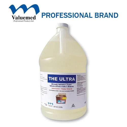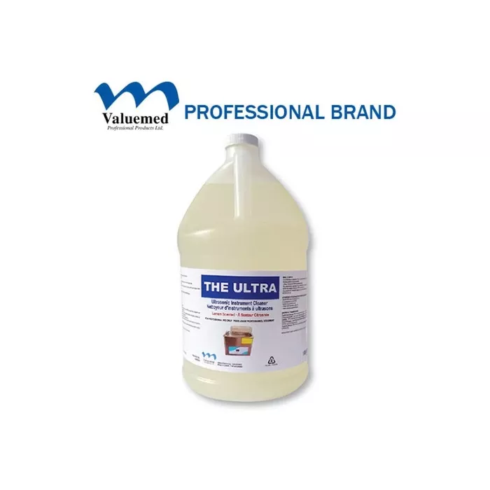 Valuemed's The Ultra solution is an ultrasonic instrument cleaner concentrate formulated for the removing of blood, tissue, debris and other contaminants from instruments in a ultrasonic cleaning unit. Contains a corrosion inhibitor.