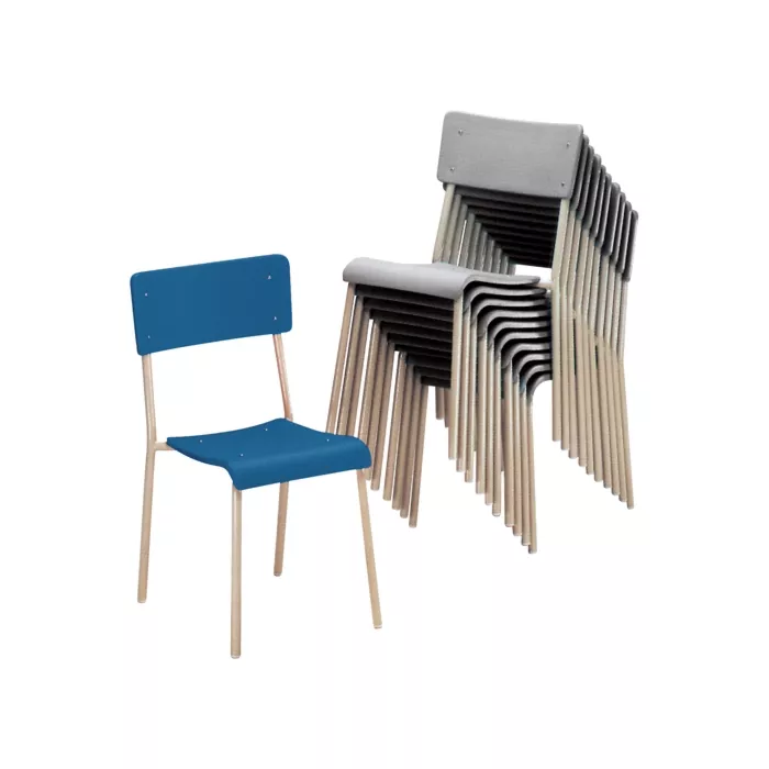 - Peuvent s'empiler avec la plupart des chaises en contreplaqué