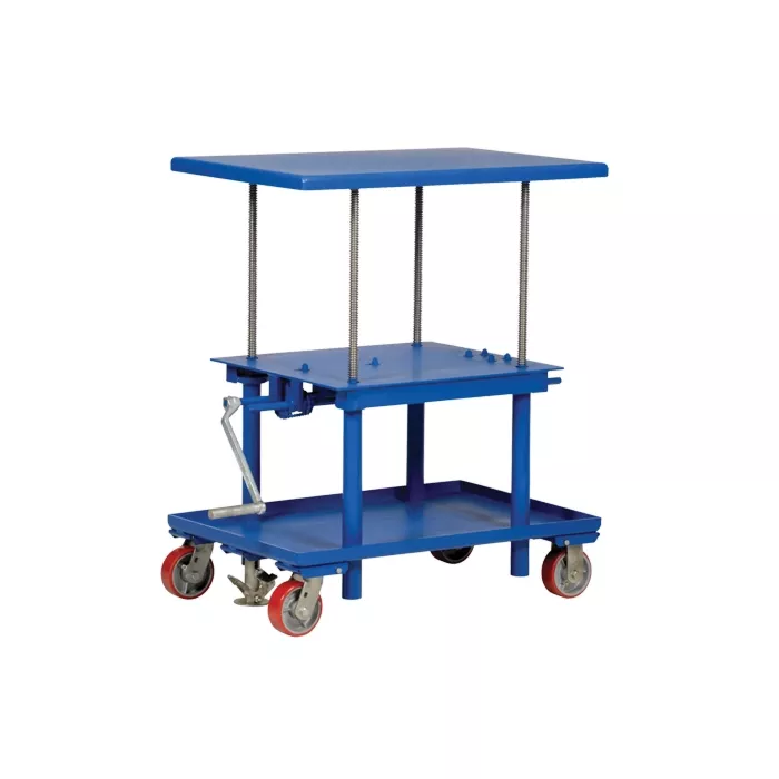 - Équipement standard incluant deux roulettes rigides et deux roulettes pivotantes 5" x 2" en polyéthylène et acier et un verrou sur le plancher