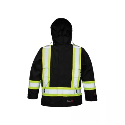 - Capuchon amovible Stormblaster(MD) réduisant l'exposition de la tête au vent et à la pluie avec une partie avant rapprochée du menton et des joues