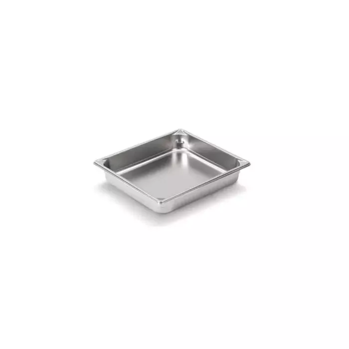 The Overview is durable 22-gauge 300-Series stainless steel pan features smooth curves and a bright finish for an elegant presentation. Resistant to dents and dings, this pan has rounded, diagonally tapered corners that are up to 300 percent stronger compared to traditional corners, and the design makes it easy to pour and scoop out food. The pan also features flat edges with higher rims to prevent loss of steam for increased efficiency. Antijam stacking lugs enable easy separation and lifting of the pan.
