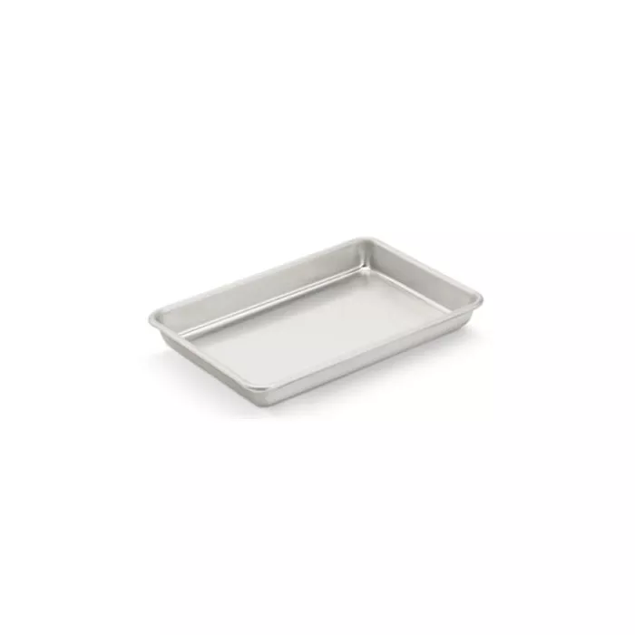 Made of heavy-duty aluminum, the Vollrath® Wear-Ever 1/8th size (9.5" x 6.5") sheet pan is proven to be 20 percent stronger than the competition. It heats up and cools down quickly, and the pan’s concave bottom flattens for even heating. The natural finish ensures uniform results, and the tapered sides allow for convenient stacking.