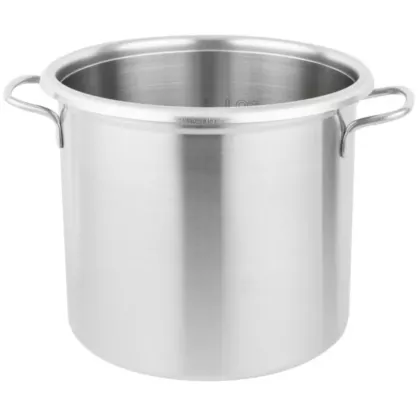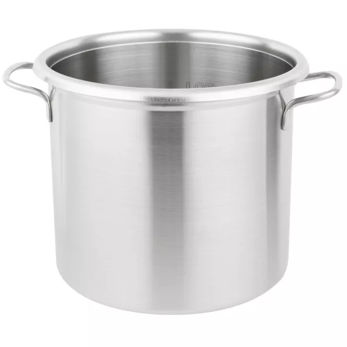 Designed for conventional and induction ranges, the Tri-Ply stainless steel stockpot by Vollrath is a versatile addition to your kitchen. This pot features a carbon steel core that is bonded with layers of 18-8 grade stainless steel for impressive durability. The stainless steel interior is smooth, easy to clean and has measuring capacities chemically etched in both English and metric scales. This pot features a tall, narrow shape that is ideal for soups, stews, sauces and other liquids, while strong welded stainless steel handles provide a steady grip and convenient transportation.