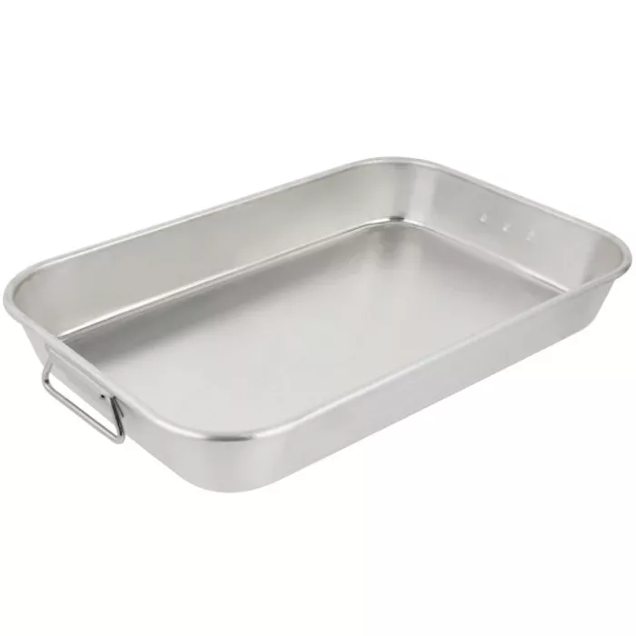 Versatile and reliable, the Vollrath® Wear-Ever bake and roast pan is sure to meet the demands of your commercial kitchen. The heavy-duty, extra dent- and impact-resistant aluminum construction will last for years and promises even, consistent heating. Strong welded handles offer a steady grip and can be lifted or lowered for additional convenience. Featuring a smooth, natural finish and curved corners, this pan is easy to clean and perfect for most commercial applications.