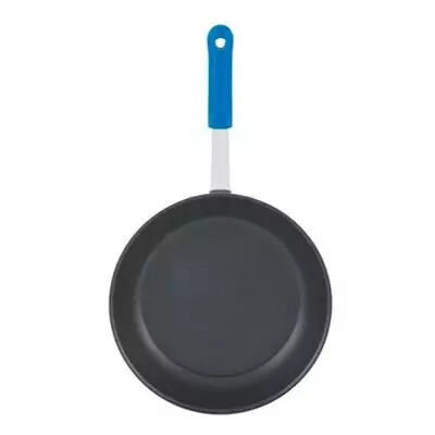 The Vollrath Wear-Ever 14" Non Stick Fry Pan with Blue Cool Handle features a rivetless interior for a smooth cooking surface that prevents food and bacteria traps. Made of strong aluminum, this durable pan will meet the high demands of your commercial kitchen and last for years.
