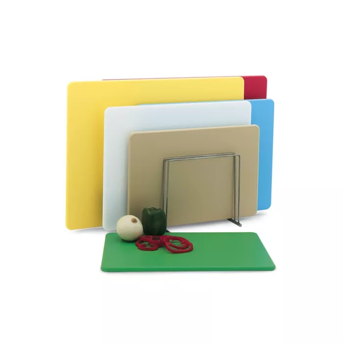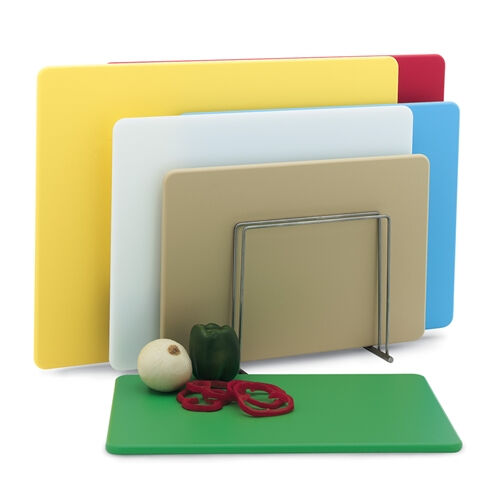 High-density non-porous surface will not stain or absorb juices. Color-coded system reduces risk of foodborne illness resulting from cross-contamination. Ideal system for maximizing HACCP program. 1/2" (1.3 cm) thick.