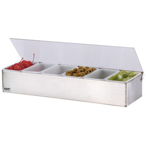 Stainless steel condiment dispensers feature stainless steel frames and hinges for easy cleaning and years of durable service. Stainless steel models have no bottom and are meant to sit on ice. Not recommended for dishwashers.