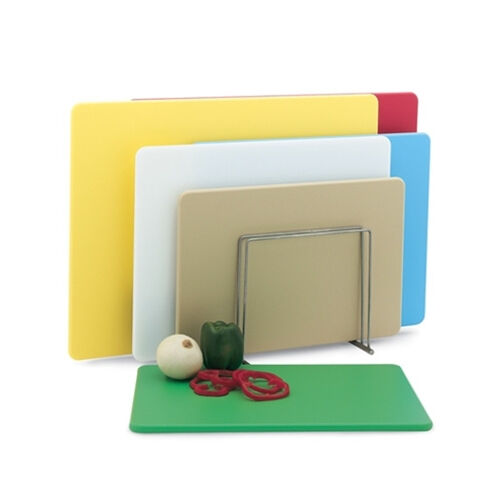 High-density non-porous surface will not stain or absorb juices. Color-coded system reduces risk of foodborne illness resulting from cross-contamination. Ideal system for maximizing HACCP program. 1/2" (1.3 cm) thick.