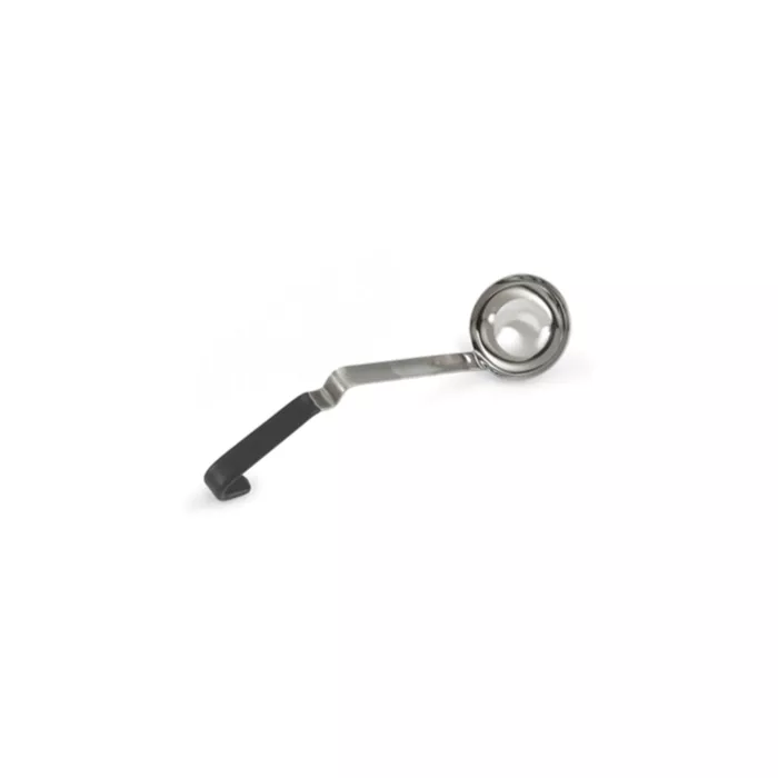 The one-piece and stainless steel construction ensures the ladle is strong enough to survive in the toughest kitchen conditions. The ladle is fully functional up to 350ºF and the insulated coating permanently bonded to the utensil will not slip or peel off. The offset handle makes this product more comfortable to use and the handle stopper prevents the ladle from sliding into the serving container.