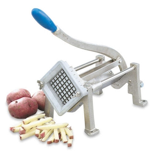Heavy, strong, nickel-plated ductile cast iron frame and handle. Screw holes on base of legs for permanent mounting to table or wall. Clean and durable stainless steel "V" trough guarantees smooth operation. Sure grip handle. Dimensions: 11-1/2" (29.2 cm) long at base, 14" (35.6 cm) long with closed handle, 34-1/2" (87.6 cm) long x 23" (58.4 cm) high with open handle.