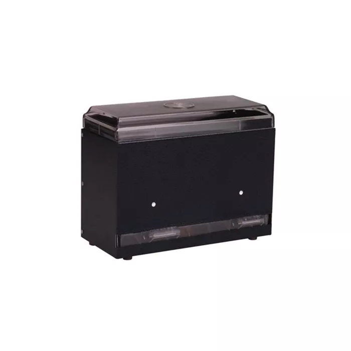 - Heavy gauge metal housing with plastic lid & dispensing bar